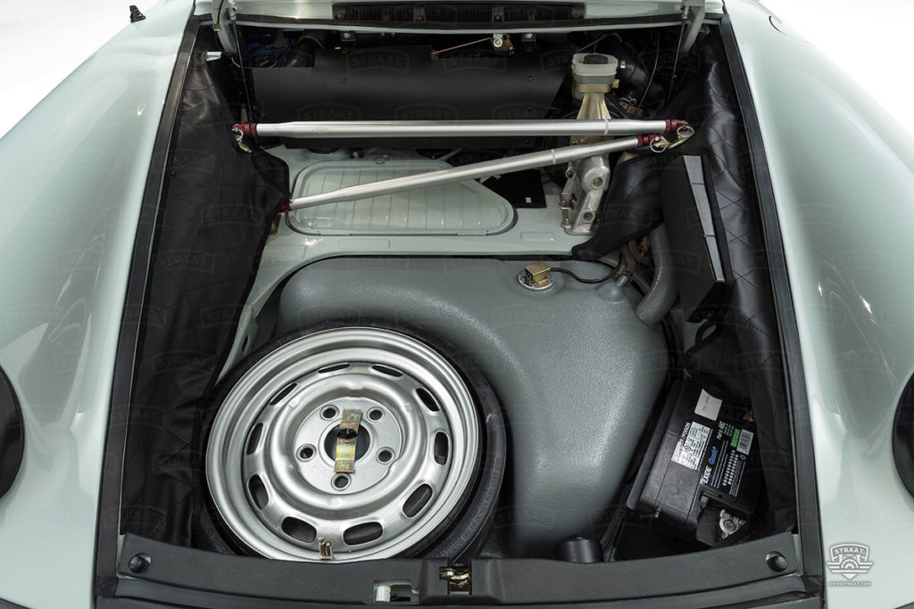 With the uprated engine comes more heat. To handle the added oil cooling demands, the original ‘trombone’ setup was replaced with an Elephant Racing Fender Mounted cooler kit with a proper Carrera radiator type cooler. This includes our Finned Oil Lines to further enhance heat dissipation.