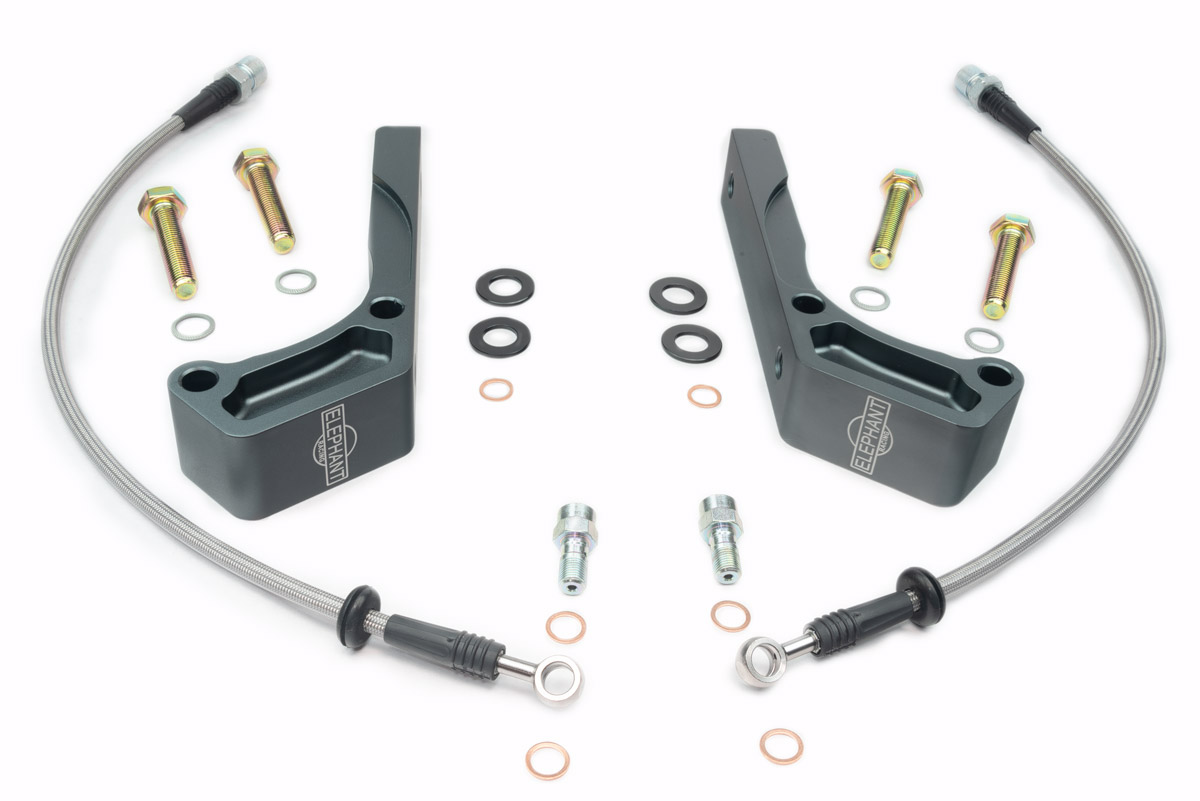 The kits include adapter blocks to convert Boxster axial mounting to the radial mounting required for the 911/912/914. Caliper brakes lines and all required mounting hardware is included.
